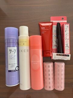 暫く使用していなかったムース2本は使用再開しました。最近パーマをかけたためケープの使用はなくなったので処分します。