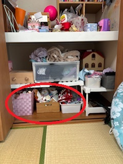 今回は下の部分、おもちゃ類の片付けになります。(写真は前回片付け前に撮ったものです)